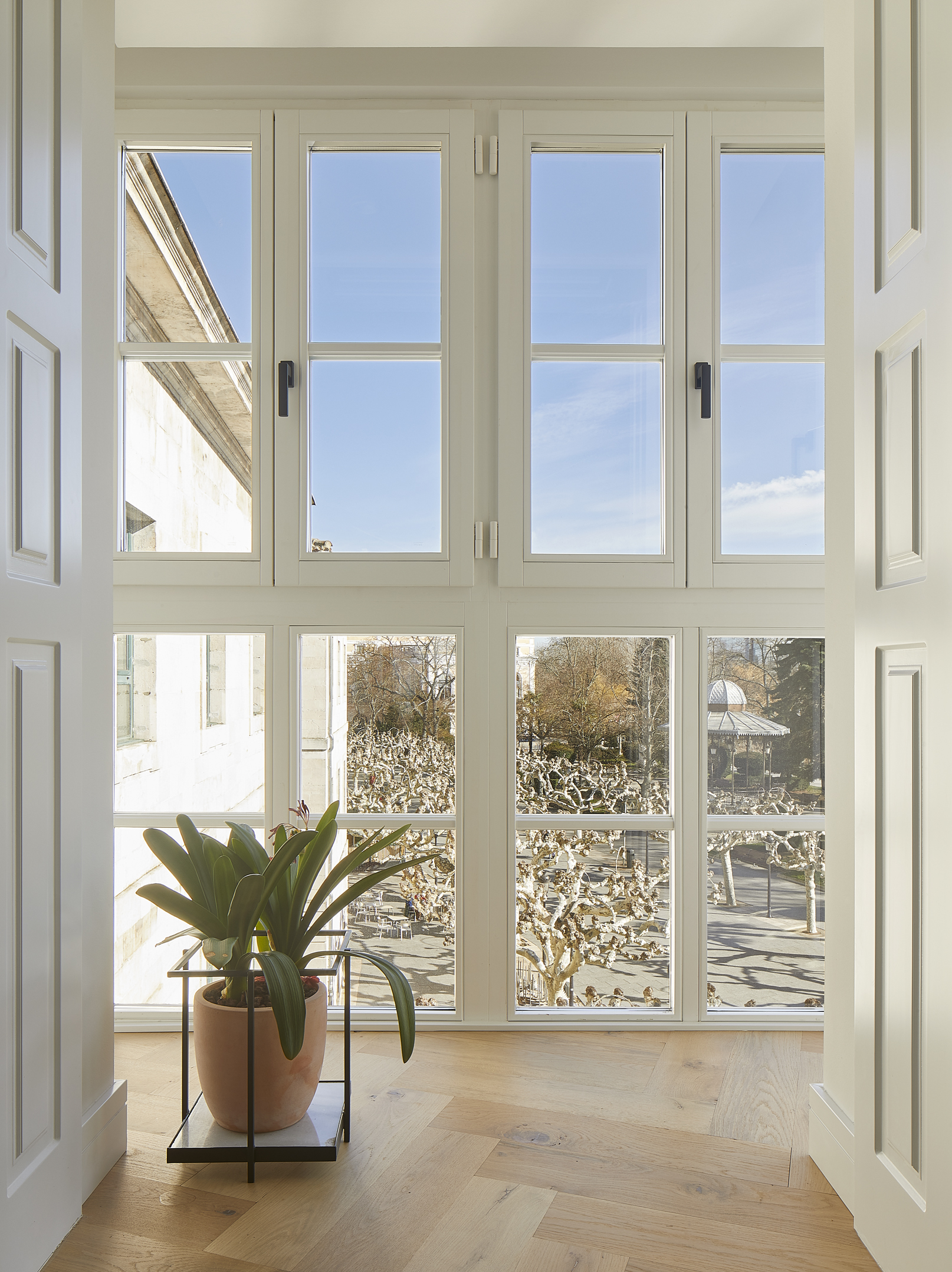 Los maceteros son el resultado de la colaboración con la empresa Amanivelamobles. El mármol utilizado como base de los maceteros es material original de la obra.